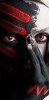 Este intenso retrato muestra a una mujer con llamativos ojos rojos y una espectacular pintura corporal en tonos ardientes. Los trazos negros y rojos sobre el rostro y las manos evocan el poder puro del fuego y unen la fotografía figurativa con el arte simbólico. Una obra de arte atrevida y cautivadora que irradia pasión, fuerza e intensidad.