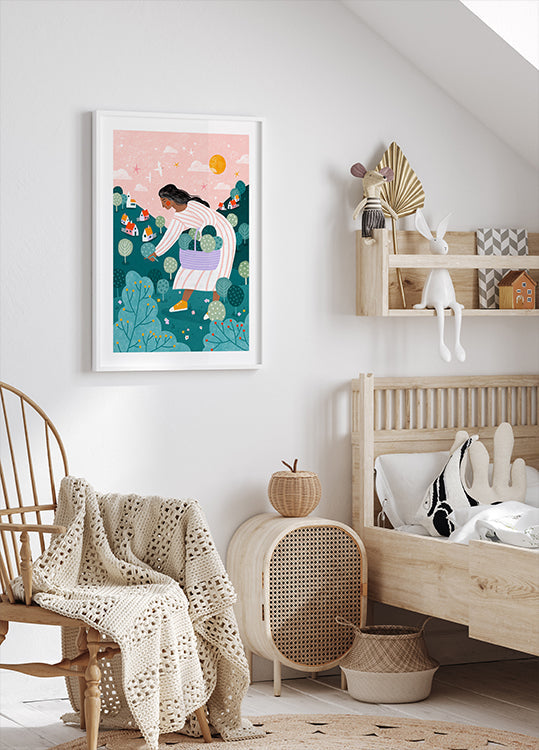 Una mujer recogiendo árboles de Bea Müller: papel de primera calidad con una superficie suave y mate y un tacto elegante. El acabado mate reduce el brillo y brinda una apariencia refinada y atemporal. Fuerte y duradero para un uso duradero, ideal tanto para entornos profesionales como para exhibiciones decorativas.