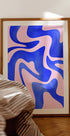 Esta audaz obra de arte abstracta presenta formas de onda azules que fluyen sobre un fondo rosa suave. Las curvas dinámicas crean ritmo y movimiento, y combinan alegría con minimalismo moderno. Una pieza distintiva que añade energía fresca y estilo artístico a cualquier espacio moderno.