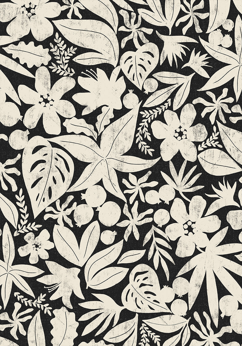 Cosy de Dana Ďuričeková combina el minimalismo moderno con la poesía de la naturaleza: un motivo en blanco y negro dibujado a mano con siluetas gráficas de hojas, flores y frutas. Los fuertes contrastes y las finas texturas crean calma y presencia que son perfectas tanto para espacios nórdicos como tropicales y artísticos. Una declaración de estilo para el vestíbulo, el salón o la oficina.