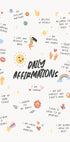 Un cartel positivo y edificante lleno de afirmaciones diarias y citas motivadoras. Con divertidas ilustraciones y palabras alentadoras, esta obra de arte es un recordatorio del amor propio, la fuerza y la atención plena. Perfecto para dormitorios, oficinas o salas de terapia para difundir positividad todos los días.