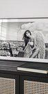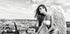 Una espectacular obra de arte en blanco y negro de una mujer con alas de ángel mirando el vasto horizonte de la ciudad. Combinando fantasía y realismo urbano, esta impactante imagen evoca fuerza, belleza y misterio: una presencia angelical contra el horizonte de la metrópolis moderna.