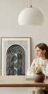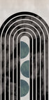 Un llamativo póster abstracto con arcos negros en capas que encierran una columna de semicírculos verdes. La composición geométrica combina simetría, profundidad y contraste y crea un llamativo diseño modernista. Perfecto para interiores minimalistas, espacios modernos y para los amantes del arte lineal abstracto.