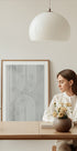 Un póster abstracto minimalista con líneas curvas blancas reflejadas simétricamente sobre un fondo de textura gris suave. Inspirada en la estética moderna de mediados de siglo y una paleta monocromática, la obra de arte combina equilibrio y simplicidad, perfecta para interiores contemporáneos y espacios de inspiración escandinava.