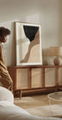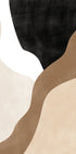 Un póster minimalista y tranquilo con formas orgánicas fluidas en tonos beige suave, marrón cálido y negro intenso. Con su paleta neutra y su simplicidad de inspiración japonesa, la obra de arte combina elegancia moderna y serenidad natural, perfecta para interiores contemporáneos, decoración escandinava o tranquilas paredes de galería.