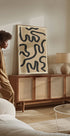 Un llamativo póster de arte lineal abstracto con atrevidos trazos negros que serpentean sobre un fondo con textura beige. La expresión moderna y minimalista combina simplicidad con movimiento, ideal para interiores contemporáneos, boho o escandinavos.
