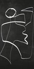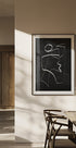 Un llamativo póster de arte lineal abstracto con expresivos trazos blancos sobre un fondo negro intenso. Minimalista pero llamativa, esta pieza contemporánea resalta la belleza de la simplicidad y la forma, perfecta para interiores contemporáneos, bohemios o escandinavos.