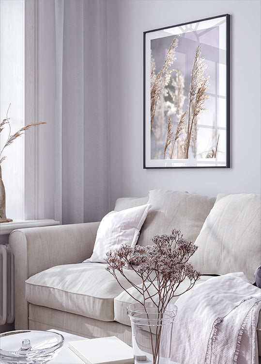 Póster de la naturaleza de la hierba de la pampa: Atardecer en el campo