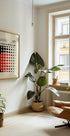 Un llamativo cartel de la Bauhaus Ausstellung de 1923, que presenta llamativos círculos geométricos rojos y negros dispuestos en un patrón rítmico. Este diseño vintage refleja el enfoque del movimiento Bauhaus en la forma, el color y la función. Una combinación perfecta de arte e historia, ideal para interiores retro y modernos.