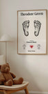 Un póster personalizado elegante y atemporal que presenta huellas de bebé y detalles de nacimiento personalizados, como nombre, fecha, hora, peso, altura y lugar de nacimiento. El diseño limpio y minimalista con un fondo neutro suave lo convierte en un recuerdo perfecto para los nuevos padres y una hermosa adición a cualquier guardería o pared familiar.