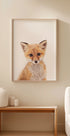 Un retrato encantador y llamativo de un cachorro de zorro capturado sobre un fondo blanco simple. El pelaje suave, los ojos grandes y los finos detalles resaltan la inocencia y la belleza de este joven animal del bosque. Perfecto para la habitación de los niños, los amantes de los animales o los interiores minimalistas modernos.