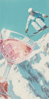 Un póster divertido y surrealista de Andreas Magnusson: Un vistazo al glamour alpino, donde el champán rosado burbujea contra los picos nevados de las montañas y la pista de esquí serpentea a través de un resplandeciente paisaje invernal. Los tonos pastel y los finos detalles crean una atmósfera de ensueño que equilibra la aventura, el humor y la elegancia. Perfecto como punto de atracción en el salón o en el habitáculo.
