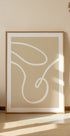 Un póster moderno y minimalista con líneas fluidas blancas sobre un fondo beige suave. El diseño abstracto aporta simplicidad, equilibrio y elegancia a cualquier habitación.