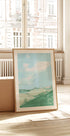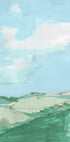 Un suave cuadro de paisaje abstracto con colinas verdes y un gran cielo azul con nubes claras. Inspirada en la campiña inglesa y Dartmoor, esta obra de arte con apariencia de acuarela agrega una atmósfera tranquila y aireada a cualquier habitación. Perfecto para los amantes de la naturaleza y aquellos que desean un arte mural tranquilo.
