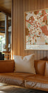 Emiliano Deificus reimagines Vienna with a striking black map washed in earthy tones. The city’s street grid, districts, and the sweep of the Danube emerge as bold, minimalist geometry, turning urban texture into art. A contemporary statement piece for lovers of maps, cities, and refined design. From the artist’s Black Maps series.