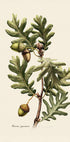 Una ilustración botánica detallada de Quercus pirenaica (Roble melojo) que muestra bellotas y hojas de textura fina en un estilo clásico vintage. Esta elegante tabla rinde homenaje a la historia natural y añade un encanto atemporal al interior. Perfecto para botánicos, amantes de los bosques y la ilustración tradicional.
