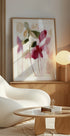 Una composición botánica poética y abstracta donde tonos violetas y dorados se encuentran en suaves pinceladas. Las flores y las hojas parecen flotar en un ligero movimiento, con delicados detalles en rosa y verde. Un atractivo moderno y elegante para el hogar, creado por el artista Janel Bragg. Perfecto para salón, dormitorio o espacio creativo.