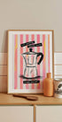Café Mocca sobre rayas - Abrazo en una taza Póster