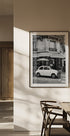 Esta fotografía en blanco y negro captura el encanto atemporal de una esquina de París, donde un clásico Fiat 500 blanco está estacionado frente al Café Fleurus. La atmósfera vintage, los balcones ornamentados y los toldos a rayas invitan al espectador a una escena nostálgica francesa. Perfecto para los amantes de la arquitectura parisina, los paisajes urbanos europeos y la fotografía monocromática: un toque sofisticado en las paredes de las galerías o en interiores urbanos.