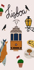 Haga un viaje visual a Lisboa: un tranvía de color amarillo dorado serpentea entre fachadas de colores pastel, azulejos azules y colinas empinadas, mientras cables y farolas perfilan el cielo. Los tonos cálidos, la brisa del mar y la vida de los cafés y bares de sardinas se combinan en un motivo gráfico atemporal que captura el alma de la ciudad. La luz del sol y la vista hacia el Tajo completan el sueño de viajar.