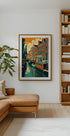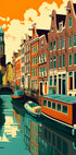 Taudalpois Amsterdam Canal Houses captura el encanto de las estrechas casas a dos aguas de la ciudad a lo largo del canal. Los cálidos tonos anaranjados se reflejan en el agua, mientras que los barcos y las bicicletas sugieren un movimiento tranquilo por las calles históricas. Un cartel de viaje nostálgico con claridad gráfica y un toque vintage moderno. Perfecto para los amantes de Ámsterdam y la poesía urbana nórdica.