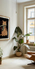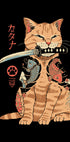 Una obra de arte atrevida y divertida de Vincent Trinidad que representa un gato samurái tatuado con una katana en la boca. Este diseño de inspiración japonesa combina motivos tradicionales de tatuajes koi con la cultura pop moderna, lo que lo convierte en una pieza de arte mural única para los amantes de los gatos y los fanáticos de la estética japonesa.