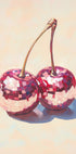 Una obra de arte lúdica e imaginativa de dos cerezas transformadas en brillantes bolas de discoteca. Con colores vibrantes, reflejos brillantes y un estilo pictórico, esta obra combina surrealismo y naturaleza muerta de una manera moderna y caprichosa que agrega energía y diversión a cualquier habitación.