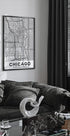 Un tributo elegante y monocromático a Chicago: letras y elementos gráficos se unen en un motivo tranquilo y equilibrado que resalta el carácter de la ciudad en blanco y negro. Minimalista y retro al mismo tiempo, perfecto para darle un aire urbano al hogar. Diseño de StudioSix. Encaja muy bien en el vestíbulo, el salón o la oficina y combina tanto con interiores modernos como vintage.