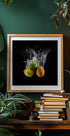 Citrus splash de Mogyorosi Stefan captura el momento en que el limón, la lima y la naranja explotan en el agua con gotas chispeantes. El fondo oscuro y el juego de colores vibrantes crean un contraste y movimiento dramáticos: una naturaleza muerta fresca y dinámica que da vida a la cocina, el bar y la sala de estar. Perfecto para los amantes del color, la energía y el arte de la cocina moderna.