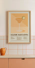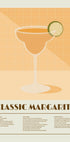 Añade un toque cítrico a tu decoración con este colorido póster del clásico cóctel Margarita. Muestra una bebida de color naranja dorado en un vaso con borde de sal y una rodaja de lima, y contiene tanto la receta como una breve historia de los orígenes de la bebida. Perfecto para paredes de cocina, bares de casa o paredes de galerías veraniegas: una hermosa combinación de encanto retro y ambiente tropical.