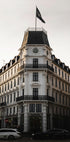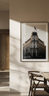 Una hermosa fotografía de un edificio histórico de Copenhague, bañada por la cálida luz del atardecer. La torre del reloj, la bandera y las elegantes fachadas resaltan la arquitectura atemporal de la ciudad, lo que convierte a este grabado en una sofisticada pieza de arte mural que celebra la cultura, el patrimonio y el espíritu urbano nórdico.