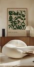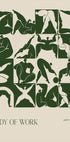 Un llamativo cartel figurativo de Arty Guava (2024), que presenta formas corporales abstractas y atrevidas en verde intenso sobre un fondo beige. La obra de arte explora la forma, el movimiento y la expresión humana en un estilo gráfico moderno.