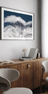 Un tranquilo paisaje invernal se desarrolla en tonos claros y azulados: majestuosos picos nevados se elevan sobre valles brumosos, mientras suaves nubes cruzan el cielo. El ambiente limpio y fresco invita a la contemplación y la tranquilidad. Una mirada poética a la fuerza y el silencio de las montañas, creada por Xiaoyang Wang. Perfecto como punto focal tranquilo en el salón.