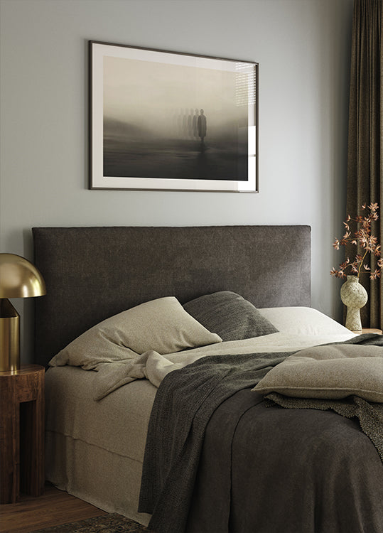 Un motivo poético e inquietante de una figura masculina que desaparece lentamente en un horizonte brumoso. La imagen oscila entre lo real y lo onírico, planteando preguntas sobre la identidad y el tiempo.