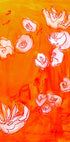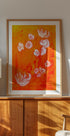 Una obra de arte floral audaz y expresiva con pinceladas dinámicas en cálidos tonos ocres y naranjas, acentuadas por delicadas flores blancas parecidas a orquídeas. Inspirada en estilos expresionistas con un toque moderno, esta pieza aporta calidez y energía tropical a cualquier espacio.