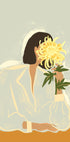 El póster Golden Flower Tranquility captura un momento de tranquila elegancia y contemplación. Una figura sin rostro, vestida con una blusa suave y fluida, sostiene un crisantemo de color amarillo intenso frente a su rostro, creando una interacción poética entre identidad y naturaleza. Los cálidos tonos mostaza de la superficie de la mesa y las hojas de color verde intenso equilibran el fondo pastel apagado, haciendo que los pétalos dorados de las flores sean el punto focal. Combinando líneas modernas con pinceladas pictóricas texturizadas, esta obra minimalista pero expresiva es perfecta para agregar calma artística a cualquier interior moderno.