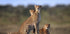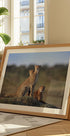 Una poderosa fotografía de vida silvestre de una madre guepardo con sus cachorros, descansando en una cresta mientras exploran la sabana. La imagen captura la elegancia, protección y ternura del depredador más rápido de África y es un homenaje a la naturaleza, los lazos familiares y el espíritu salvaje de los animales.