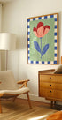 Flor estilizada con pétalos rojos y puntos negros Póster