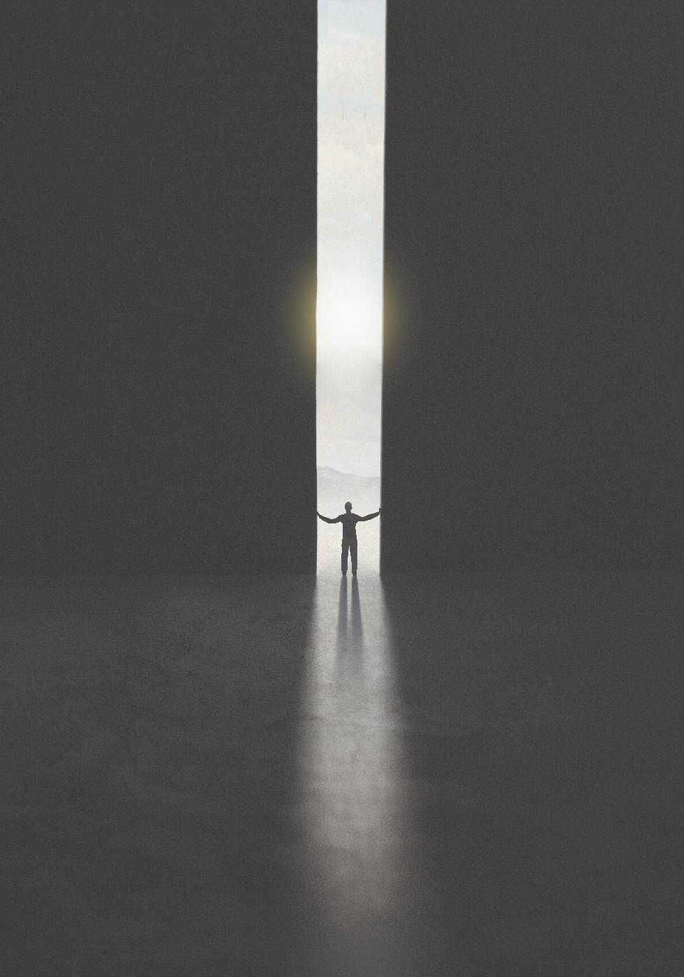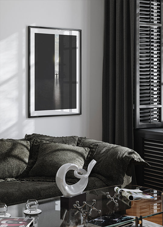 El póster Out of Darkness* es una obra de arte poderosamente surrealista que simboliza fuerza, esperanza y nuevos comienzos. Una persona solitaria se encuentra frente a una puerta gigantesca, aparta la oscuridad y deja entrar la luz. Esta imagen minimalista pero poderosa representa la superación de obstáculos, el desarrollo personal y dar el paso hacia un futuro mejor. Perfecto para hogares, oficinas, salas de terapia o como regalo inspirador.