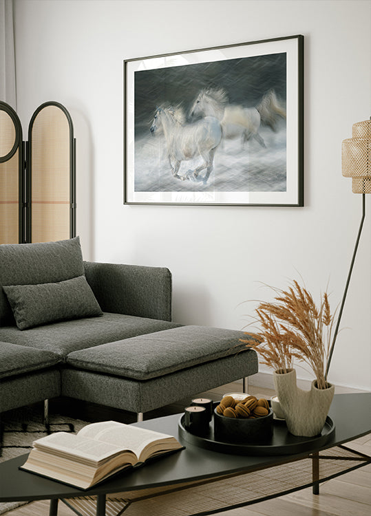 Dos caballos a todo galope rompen el silencio nevado como si de un duelo se tratara. La nieve se arremolina como señales de humo alrededor de sus músculos y melenas, mientras que la intensa luz invernal crea una expresión brillante, casi gráfica. Una visión espectacular y elegante del caballo del fotógrafo Milan Malovrh. El poder y la gracia se encuentran en una danza vertiginosa de invierno.