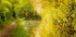 Un impresionante paisaje pictórico que captura un tranquilo sendero junto al río bañado por la dorada luz del sol. El exuberante follaje verde se mezcla armoniosamente con tonos cálidos, evocando la serena belleza de un día de verano. Esta obra de arte aporta calidez y tranquilidad a cualquier espacio interior.
