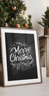 Et stemningsfuldt typografisk motiv i kridttavle-look fra Treechild: håndtegnet lettering og dekorative ornamenter samler julehilsner som “Merry Christmas” og “Happy Holidays”. Monokrom sort/hvid med snefnug, stjerner og grankviste skaber en varm, nostalgisk cafévibe – perfekt til decemberhygge i hjemmet.