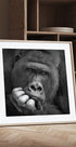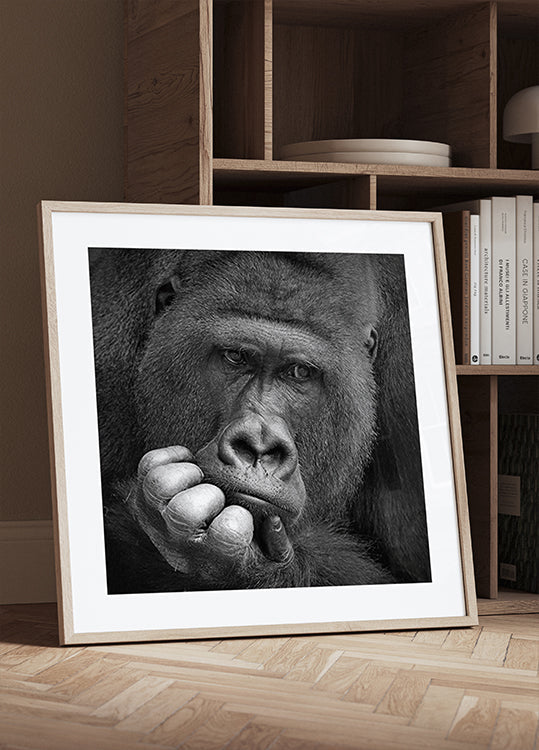 Un fuerte retrato monocromático del Buzandi de espalda plateada del zoológico de Hannover: un primer plano de la cara, donde los ojos profundos y pensativos transmiten calma y anhelo. Antje Wenner-Braun captura un momento íntimo de reflexión tranquila, donde el tiempo y el espacio parecen desaparecer en pensamientos y sueños. Un retrato que invita a la calma, la empatía y la reflexión.