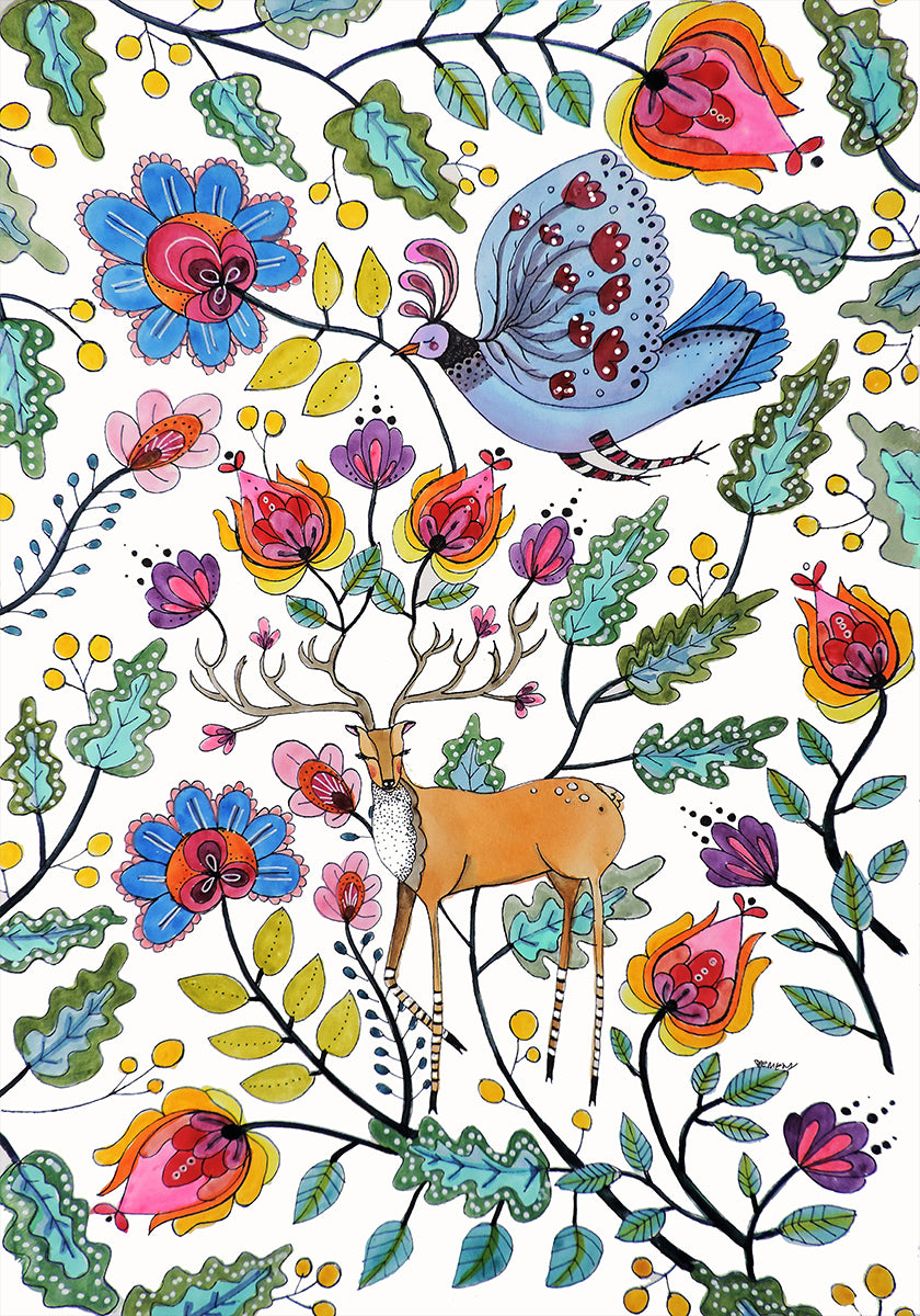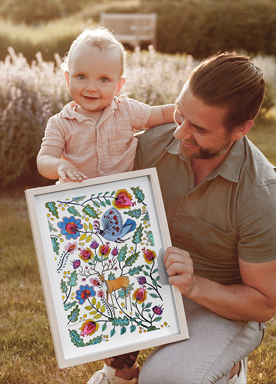 El cartel de Il Etait Une Fois (en francés "Érase una vez") es una obra de arte imaginativa y encantadora que transporta al espectador a un mundo mágico de cuento de hadas. Un elegante ciervo con sus astas en flor se alza entre flores vibrantes, mientras un pájaro azul bellamente estampado se desliza por la escena. Rica en detalles y llena de colores vibrantes (rosa, amarillo, azul y verde), esta obra irradia alegría y asombro. Perfecto para habitaciones infantiles, estudios creativos o cualquier espacio que celebre la imaginación y la naturaleza, captura la imaginación con su encanto lúdico inspirado en un libro de cuentos.