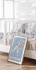 Un divertido y colorido cartel holandés de la artista Carla Daly: un mapa ilustrado de Ámsterdam, Rotterdam y Eindhoven, canales y molinos de viento, tulipanes y bicicletas. Animales como vacas, ovejas y pájaros dan vida a la tierra, mientras que lugares emblemáticos como Evoluon adornan el motivo. Perfecto para la habitación de los niños o para los sueños de viaje.