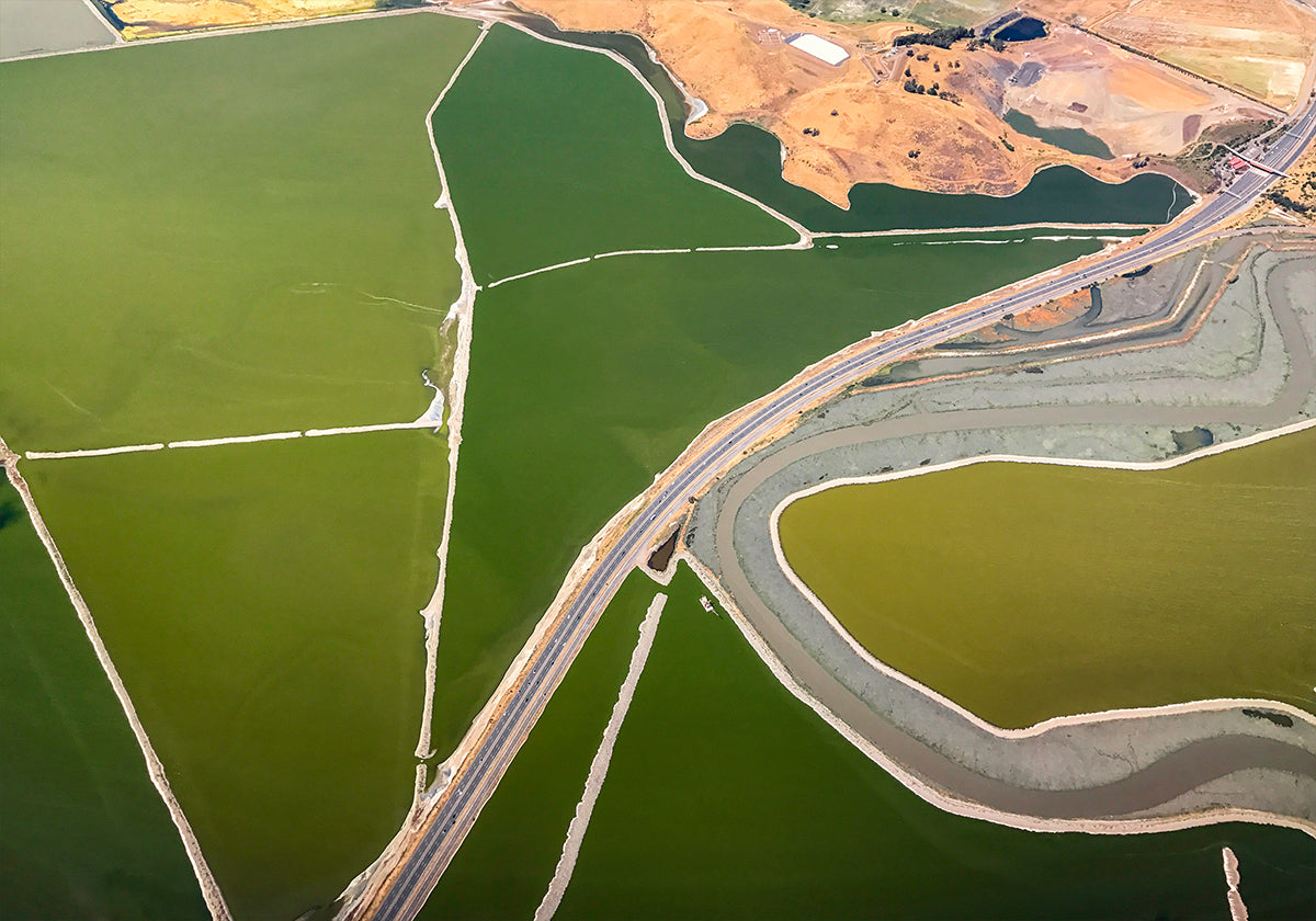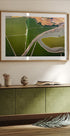 Una impresionante fotografía aérea del paisaje de la Bahía de San Francisco, donde caminos sinuosos, arroyos y campos verdes forman distintos patrones geométricos. Capturada desde arriba, esta obra de arte resalta la belleza de los límites de la naturaleza y la creación del hombre, lo que la convierte en un arte fotográfico mural moderno.