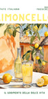 El póster de Limoncello La Dolce Vita captura la esencia de un soleado verano italiano, donde los limones dorados cuelgan pesados de exuberantes ramas verdes contra un fondo de rústicos techos de terracota. En una soleada terraza, una botella y una copa de limoncello recién hecho están listos para invitarte a disfrutar de la dulzura y la frescura del estilo de vida mediterráneo. Esta obra de arte inspirada en la acuarela irradia calidez y relajación, perfecta para aportar un toque de Italia a la cocina, el comedor o en la pared de una galería inspirada en el verano.