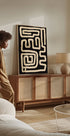 Una obra de arte abstracta y atrevida con líneas retorcidas de color beige sobre un fondo negro intenso que crea un efecto de laberinto. El fuerte contraste y el diseño moderno lo convierten en una pieza central llamativa en interiores modernos, perfecto para agregar expresión gráfica a una sala de estar, pasillo u oficina.