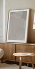 Un póster abstracto minimalista con líneas blancas fluidas y orgánicas sobre un fondo beige suave. Los patrones finos y rítmicos aportan movimiento y textura, y combinan la elegancia natural con un diseño moderno. Perfecto para interiores modernos que desean un arte mural tranquilo en tonos neutros.