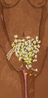 El póster desnudo de Daisy Bloom es una ilustración audaz pero poética que celebra la feminidad, el amor propio y la belleza natural. Muestra a una mujer desnuda de piel morena sosteniendo un delicado ramo de margaritas blancas. La obra combina cálidos tonos tierra con un fondo de textura rosa vibrante, y las joyas detalladas y el fresco ramo floral evocan temas de fuerza, dulzura y sensualidad. Una poderosa declaración para interiores modernos, galerías de arte o espacios íntimos.